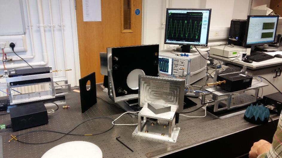 Antenna test range and Vector Network Analyzers available. Test range is suitable for frequency range 20 GHz – >1 THz; VNA coverage 0 GHz – 330 GHz.